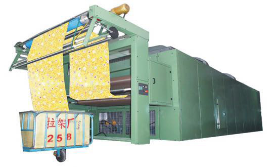 通過數個導輥,張力調整輥,對中輥的綜合調節,使面料能夠以良好的張力狀態附于規定尺度的導帶上面,對于針織面料等高張力、高彈性的面料,可選擇配置專用面料儲存器等輔助裝置,以期達到面料的經緯方向保持在一個伸縮率上。